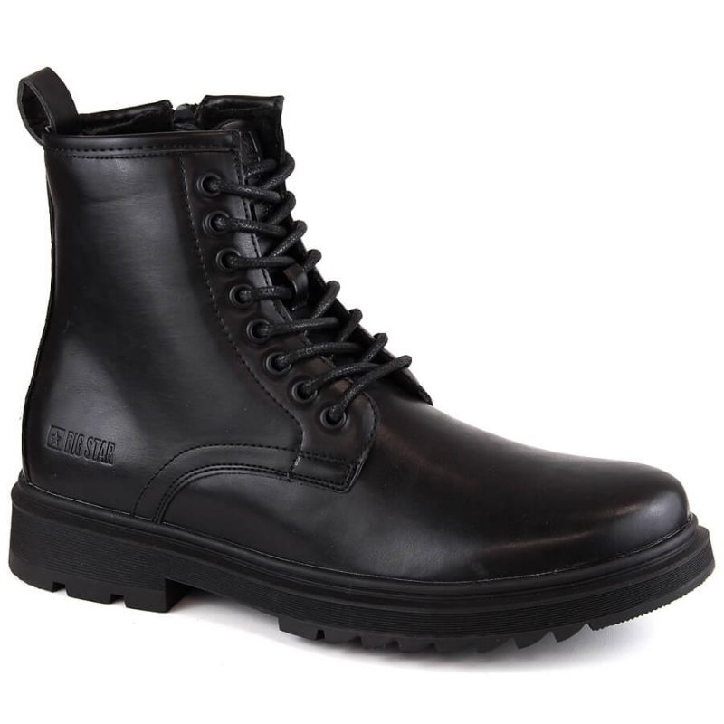 Férfi csizma Big Star M Int1915 - fekete, szigetelt, praktikus és stílusos. Kiváló minőségű ökológiai bőrből készül, amelyet az őszi téli szezonra terveztek, egyesítse a mindennapi viselkedés kényelmét a kültéri cipők funkcionalitásával.