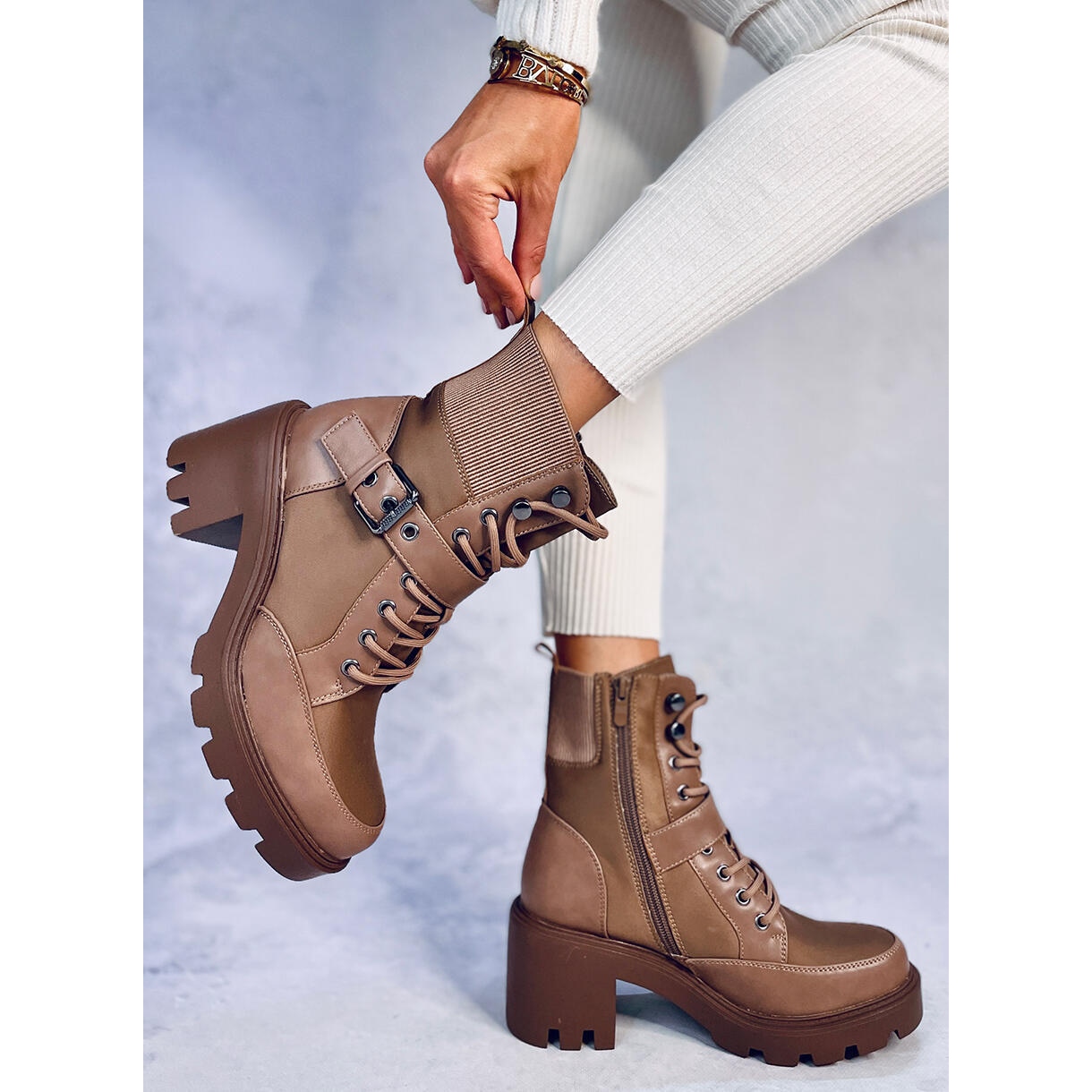 Részletek: Fűzős, magas sarkú csizma Brooks Khaki barna