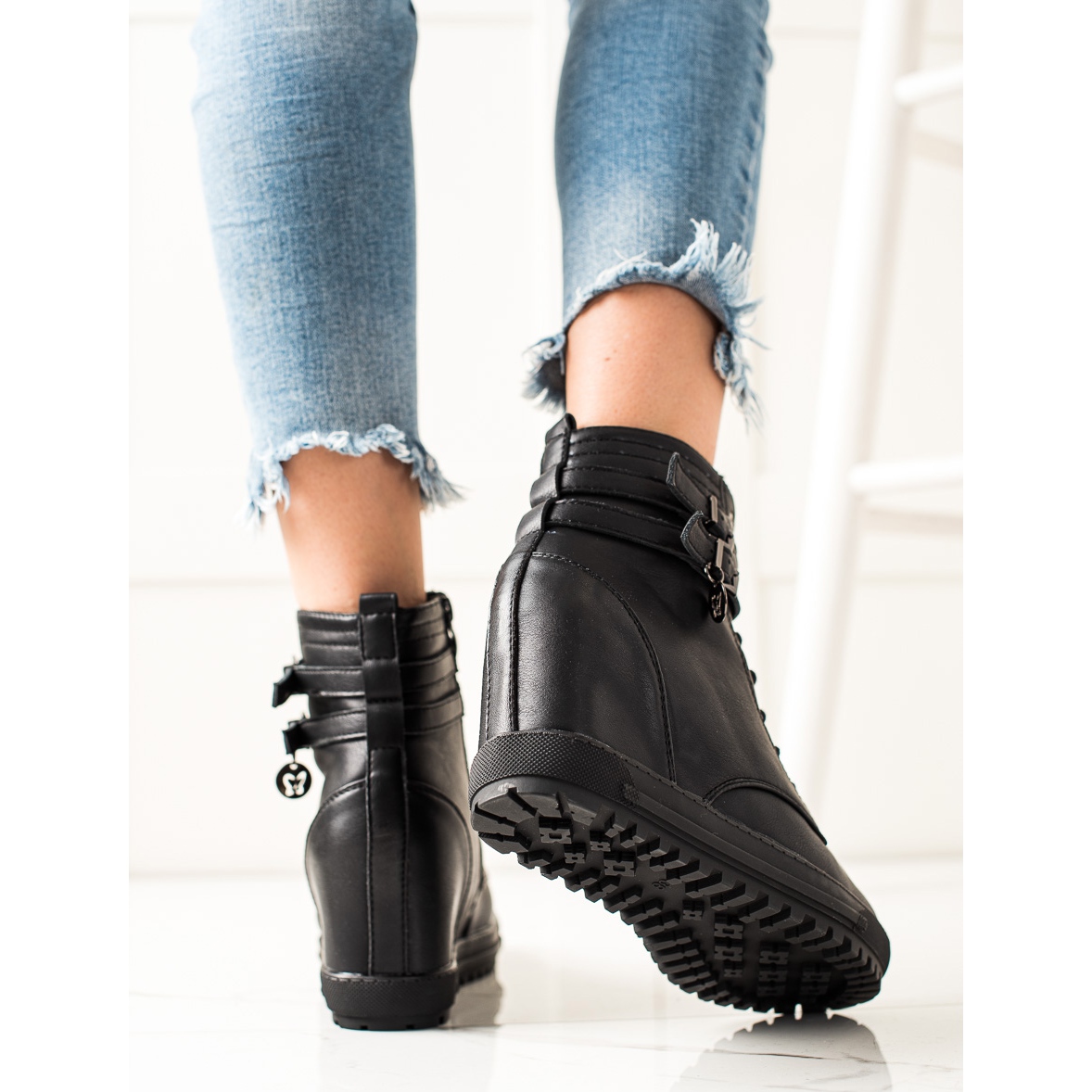 A csizmák kiváló minőségű ökológiai bőrből készültek, ami nemcsak stílusos megjelenést, hanem tartósságot is biztosít. A futófelülettel ellátott műanyag talp kiváló tapadást garantál, ami különösen fontos esős vagy téli napokon. A rejtett, 7 cm magas ék és a 2,5 cm-es platform finom eleganciát ad, kiemelve bármilyen stílust, ugyanakkor kényelmes viseletet biztosít.