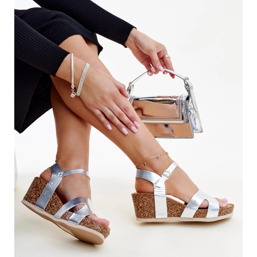 Ezüst szandál a Gabera Cork ékén a tökéletes választás a nyári napokhoz, amely elegáns ragyogást ad hozzá. Kiváló minőségű ökológiai bőrből készültek, ezek a klasszikus szandálok nemcsak a tervezésükkel, hanem a viselkedés kényelmével is örömmel szolgálnak. Fém színük tökéletesen kiegészíti őket a nyári alkotásokhoz, és minden bennük töltött pillanat tele lesz bizalommal és vonzerejével.