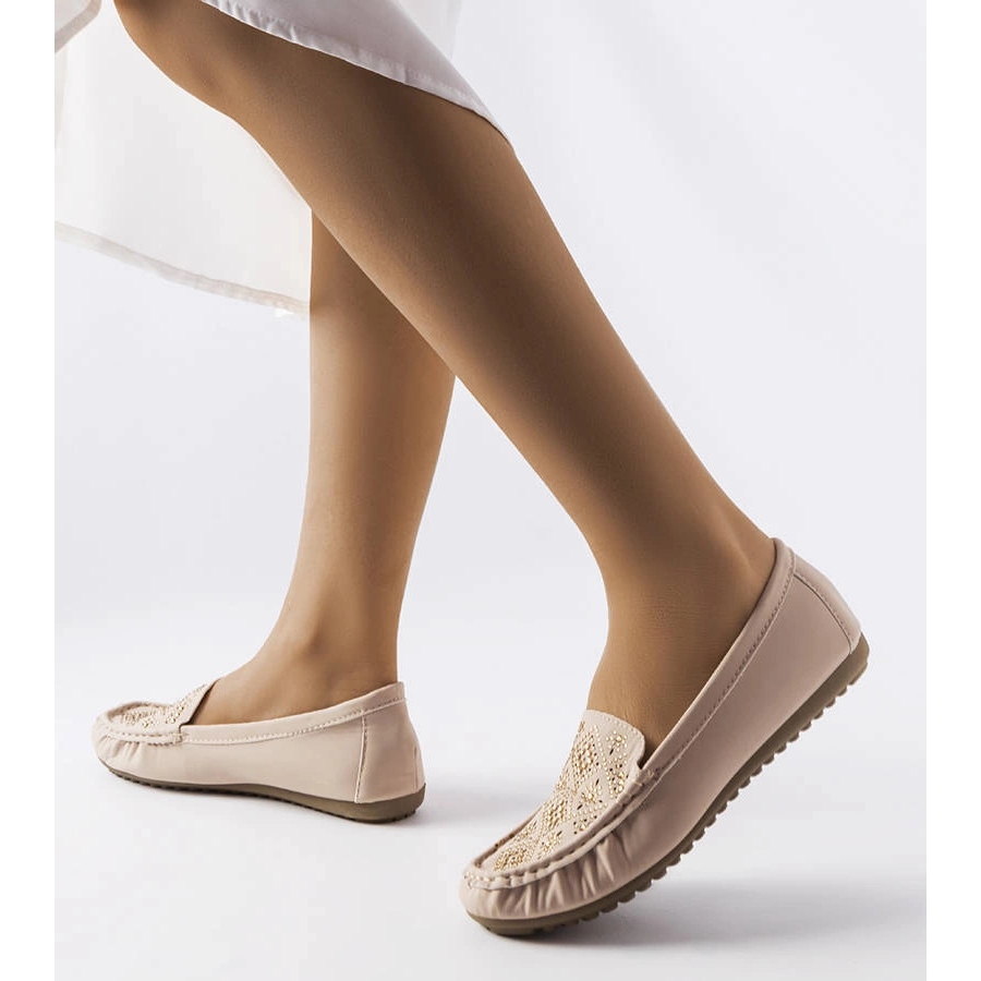 Bézs mokaszinok, amelyek Gamache cirkons-modellt díszítenek Ty-80