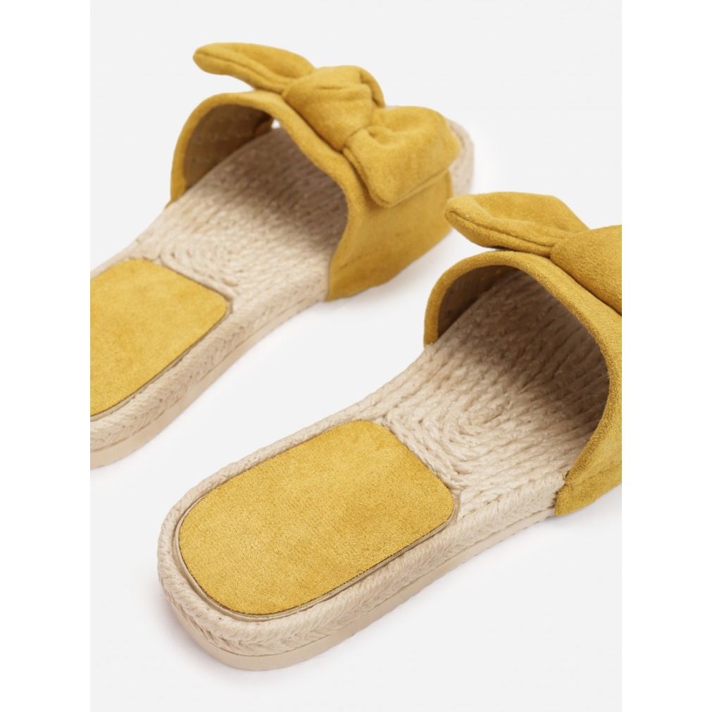 A papucsokat egy bájos masni díszíti, amely nőies bájt kölcsönöz nekik, tökéletes nyári sétákhoz vagy baráti találkozókhoz. A hornyokkal és protektorral ellátott gumitalp kiváló tapadást biztosít különféle felületeken, ami minden körülmények között kényelmet garantál. Ezenkívül a sarok alatt található talpbetét egy része kényelmes járást biztosít.