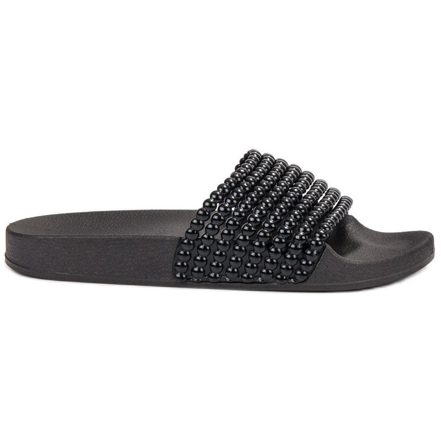 Bestelle Bestelle Gumi papucs gyöngyökkel fekete