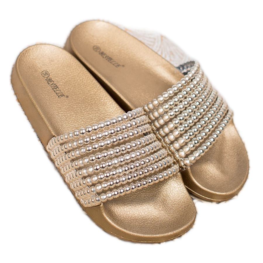 Fedezze fel a Bestelle márka egyedi gyöngyös csúszdáit, amelyek kombinálják a kényelmet és a divatos stílust. Ezek a gyönyörű sárga árnyalatú, finom arany árnyalatú papucsok minden bizonnyal felkeltik a figyelmet, és karaktert kölcsönöznek minden nyári stílusnak.