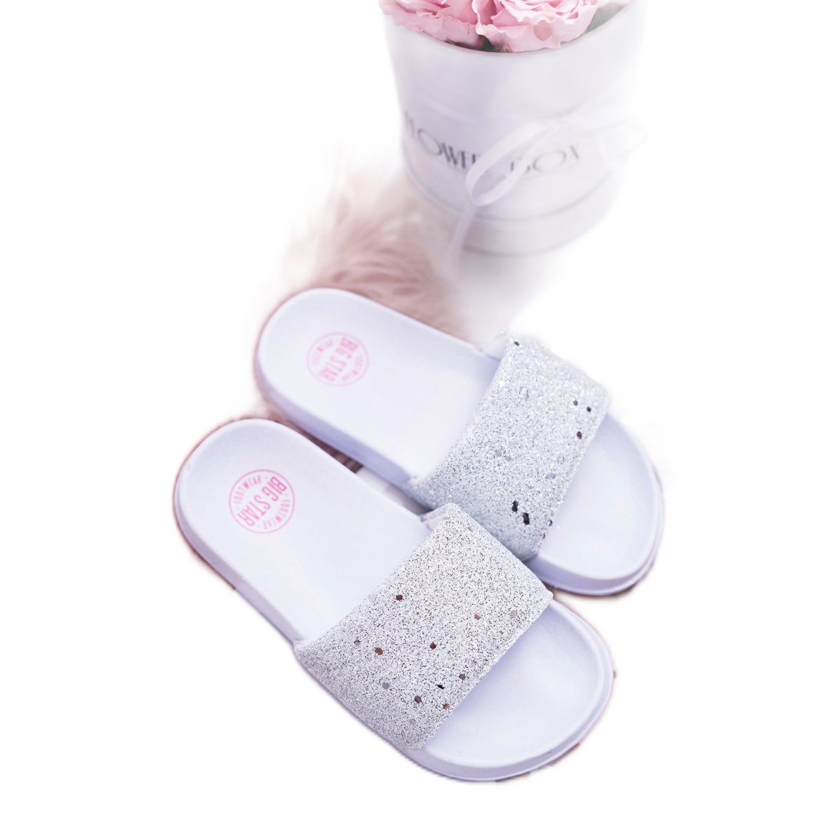 Részletek: Gyermek és ifjúsági Big Star White Glitter szandál AA374086 fehér