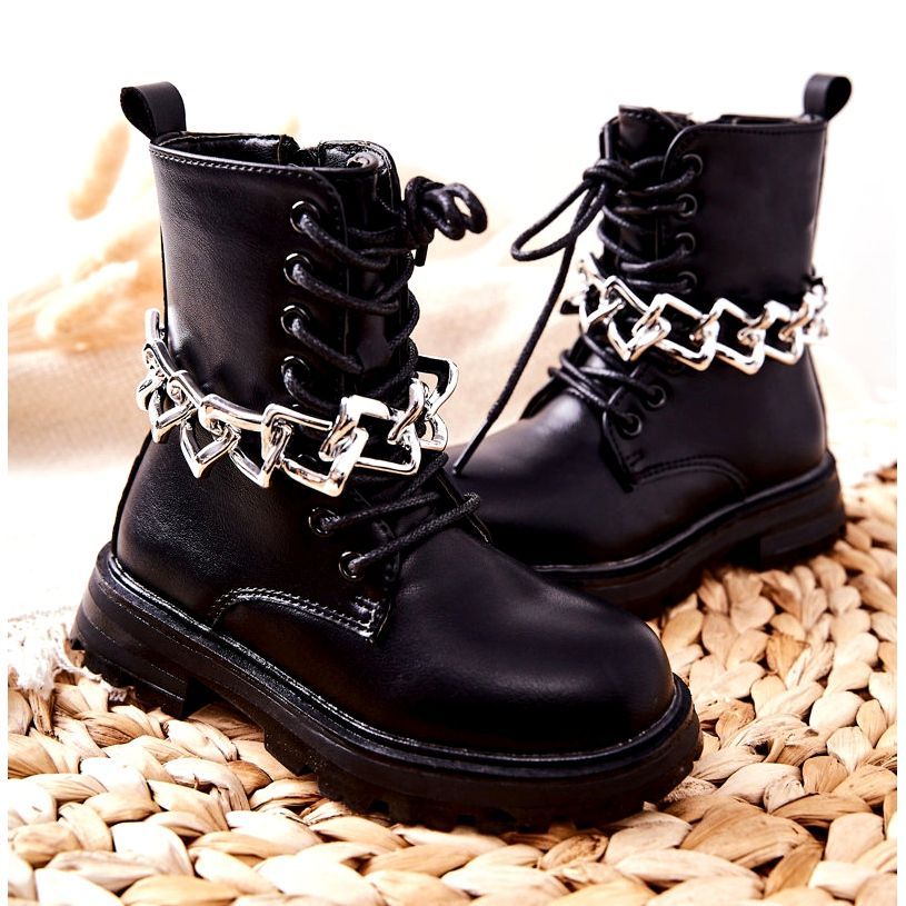 Részletek: FR1 Gyermek fekete csizma lánccal