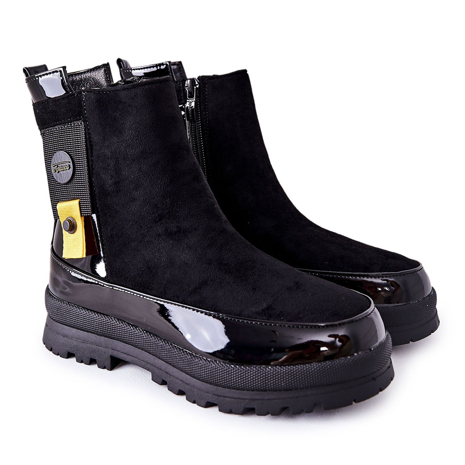 Részletek: Apawwa Gyermek fekete velúr lakkozott csizma My Lovely