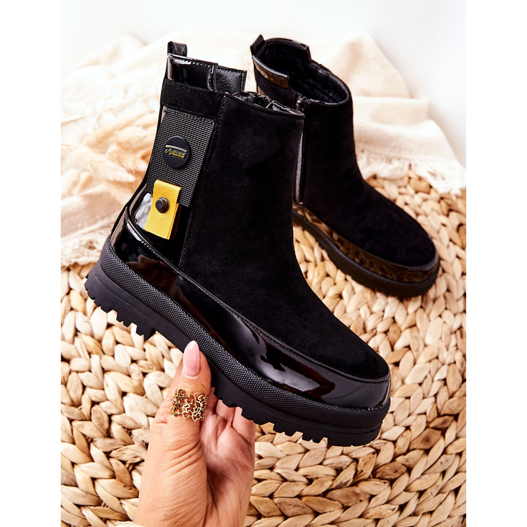 A cipők felsőrésze kiváló minőségű ökológiai lakkbőrből és velúrutánzatból készült, így rendkívül stílusos megjelenésűek. A fekete bokacsizma tökéletesen illeszkedik a legkülönfélébb stílusokhoz, az alkalmitól az elegánsabbig, és egy csipetnyi elegánsságot ad minden ruhához.
