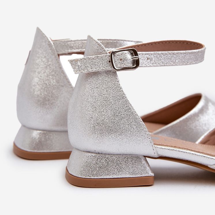 Részletek: Gyermek fényes alacsony sarkú ezüst Nelly szandál