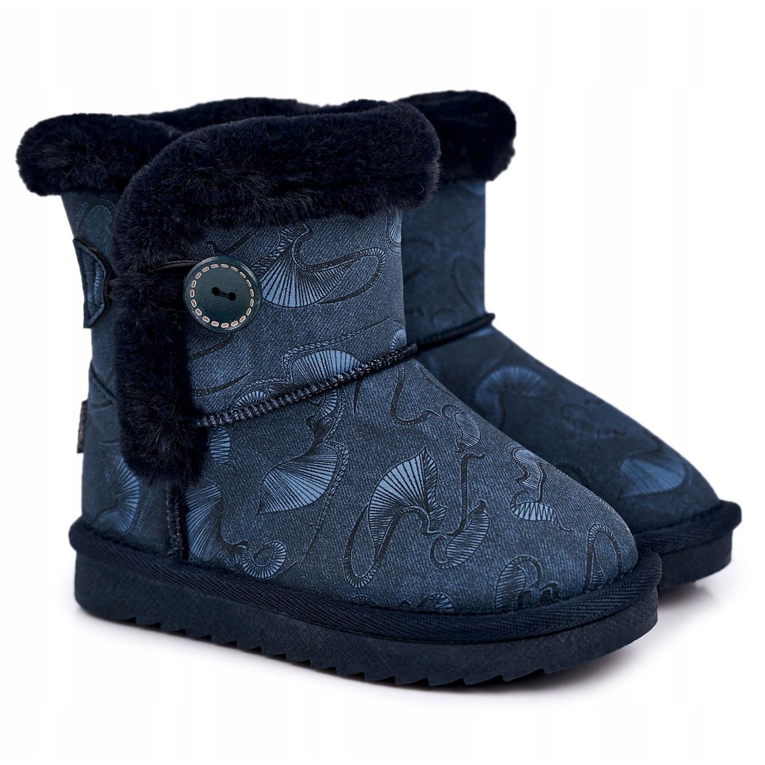 Apawwa Apawwa Gyermek hócsizma szőrmével és gombbal Navy Blue Kawai sötétkék kék