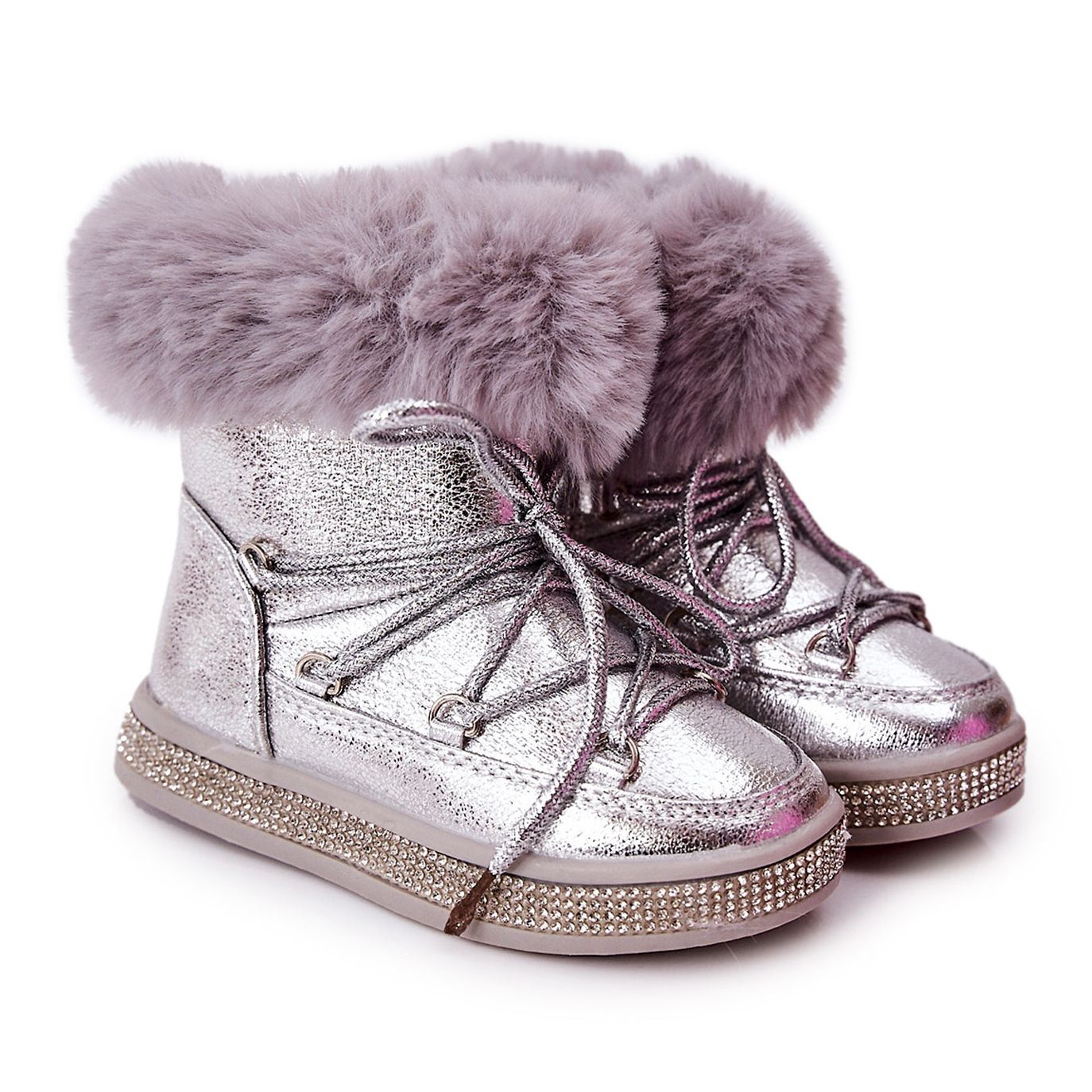 FR1 FR1 Gyermek hócsizma szőrmével Silver Grandis ezüst