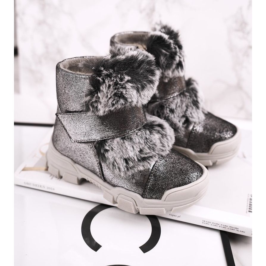 Az ökológiai bőrből készült csizma tökéletesen illeszkedik a különböző téli stílusokhoz. Szürke színük miatt univerzálisak és könnyen kombinálhatók más gardrób elemekkel. A bevarrt cipzárnak és tépőzárnak köszönhetően gyerekjátékká válik a cipő fel- és levétele, ami rendkívül fontos a legkisebbek önállósága szempontjából.