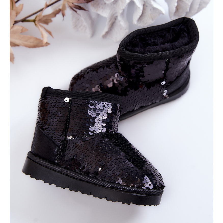 Részletek: FR1 Gyermek meleg hócsizma flitterekkel, fekete szilánkkal