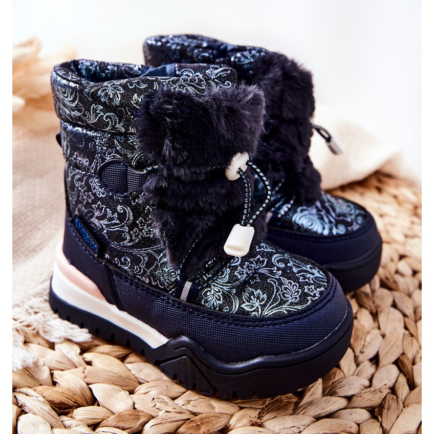 PJ2 PJ2 Gyermek meleg hócsizma szőrmével Navy Blue Dessa fehér sötétkék