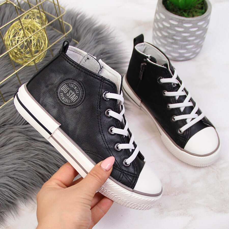 Gyerek cipők öko bőr fekete Big Star II374003 - Kényelem és stílus minden nap. Ezek a nagy csillagmárkából származó magas cipők kombinálják a klasszikus megjelenést a gyakorlati megoldásokkal, így játék közben és sétán dolgoznak.