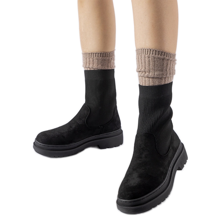 Fekete zokni Hawkins hatalmas csizma - modern, kényelmes és stílusos. Rugalmas felső részük a "zokni" technológiában tökéletesen alkalmazkodik a lábhoz, megkönnyítve a nap folyamán a felhelyezést és a kényelmet. A velúr megjelenésű befejezése elegáns karaktert ad a csizmának, amelynek köszönhetően nagyszerűek mind alkalmi, mind formálisabb stilizációkban.