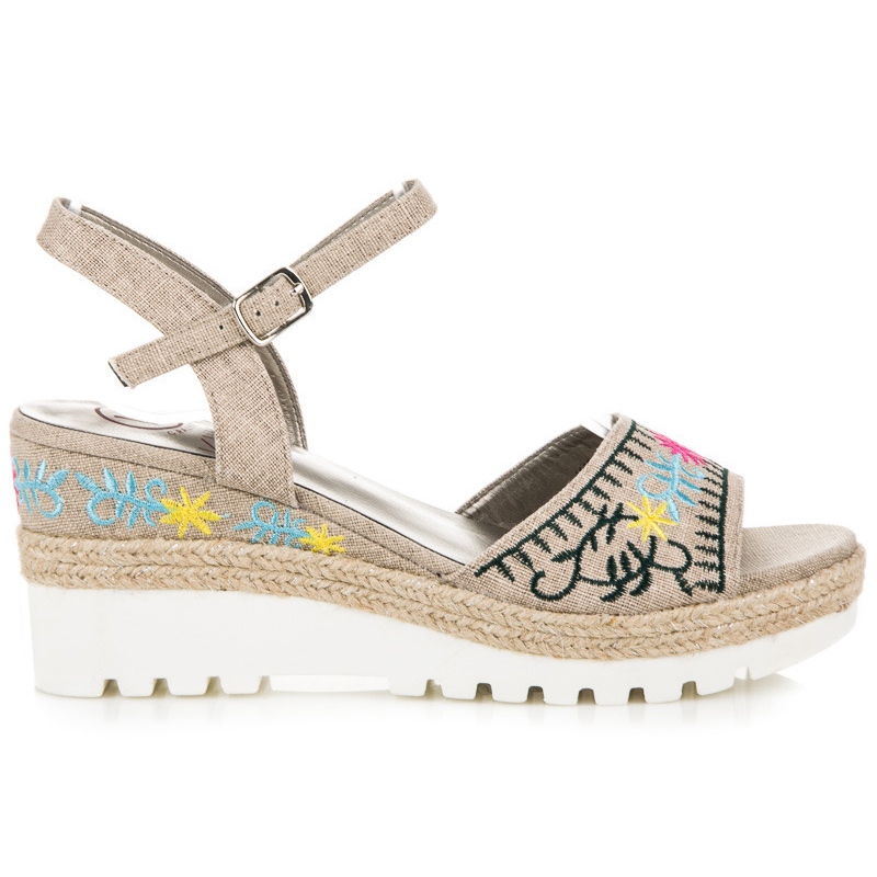 Bemutatjuk a Kylie gyártó hímzéssel ellátott barna espadrilljeit - tökéletes lábbelit a nyári napokra, amelyek a kényelmet és a divatos dizájnt ötvözik. Ezek a női szandálok egyedi stílussal rendelkeznek, így tökéletes választás különféle alkalmakra, a tengerparti sétáktól az esti kirándulásokig.