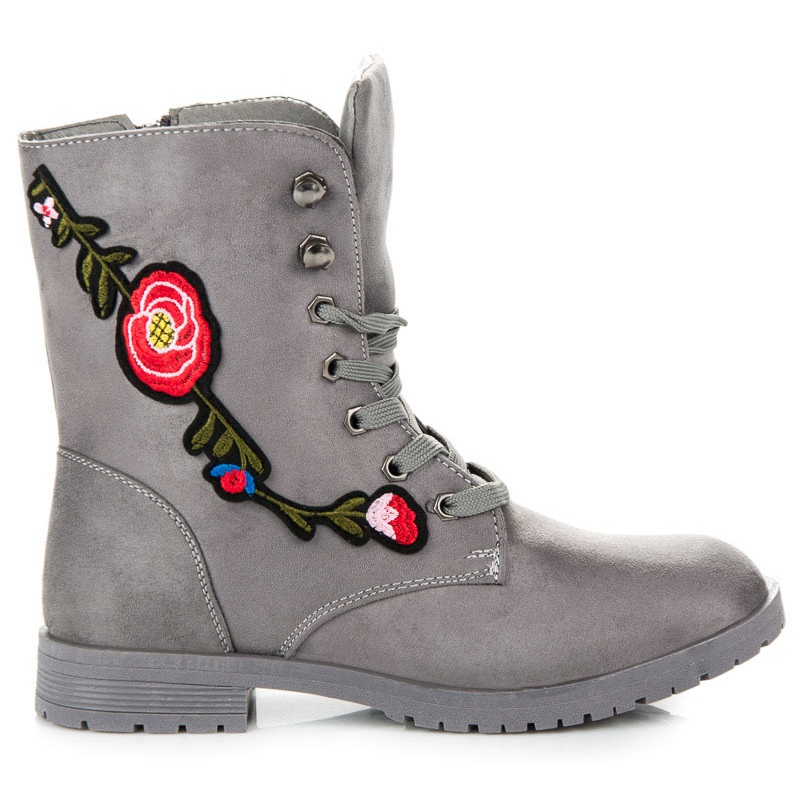 Fedezze fel a rendkívüli eleganciát és kényelmet a Sport márka szürke hímzett munkáscipőinek köszönhetően. Ez a csodálatos csizma minden nő ruhatárának része kell legyen, tökéletes kiegészítője bármilyen stílusnak. Ökológiai velúrból készültek, finomnak és könnyűnek tűnnek, így ideális választás a mindennapi használatra.