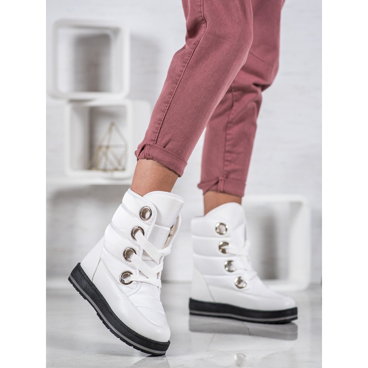 Fedezze fel az egyedi, fehér Muto hócsizmát, amely egyesíti a stílust a funkcionalitással. Ezeket a magas szárú bokacsizmákat hidegebb napokra tervezték, és a 2,5 cm-es platformnak köszönhetően kiváló szigetelést biztosítanak. Kényelmes és praktikus, mindennapi használatra tökéletes, hétköznapi és sportos stílusban.