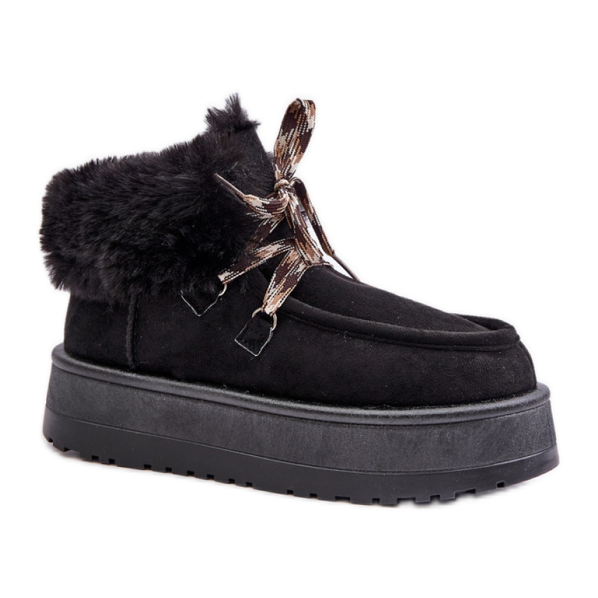 A cipő 4,5 cm -es magas platformon van felszerelve, amely nemcsak centimétereket ad hozzá, hanem kiváló szigetelést is biztosít a hideg talaj előtt. A lábbeli belsejét kellemes szőrrel bélelték, amely garantálja a hő kényelmet, megvédve a lábát az alacsony hőmérsékletektől.