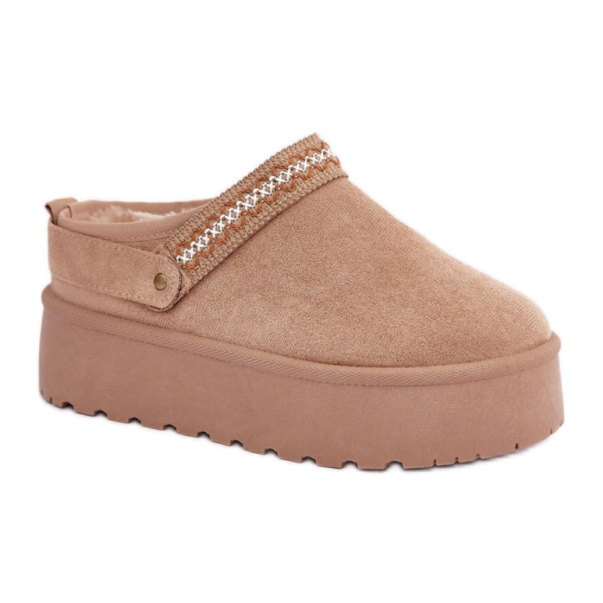 A 4 cm -es magas platformon beállított hócsizma megfelelő szintű kényelmet biztosít, hangsúlyozva az ábrát. A bézs édes árnyéka megkönnyíti őket a különféle ruházati készletekkel, így elegáns akcentust adva számukra.