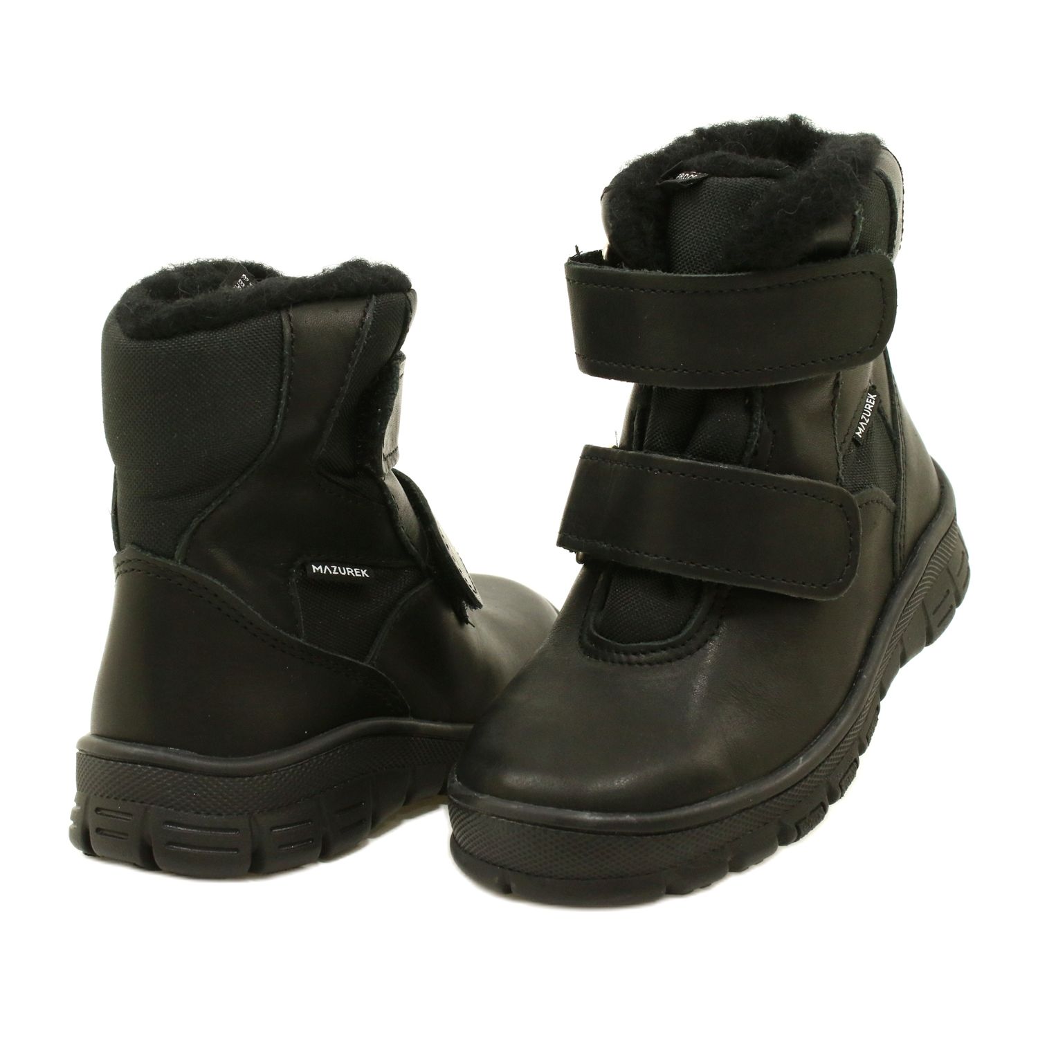 Fekete gyermekek hócsizmája A Mazurek 1351 a TE-POR membránnal praktikus és meleg téli cipő-vízálló, jól szigetelt és kényelmes felhelyezés. Tökéletes fiúk és lányok számára, akiknek védelmet igényelnek a hó és a nedvesség ellen, miközben megőrzik a kényelmet.
