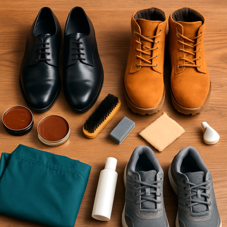 Vásárlás: cipőkrém, impregnálószer, ecsetek (sima bőrhöz és velúrhoz), fa cipőfák, cipődezodor, szárításhoz újság.