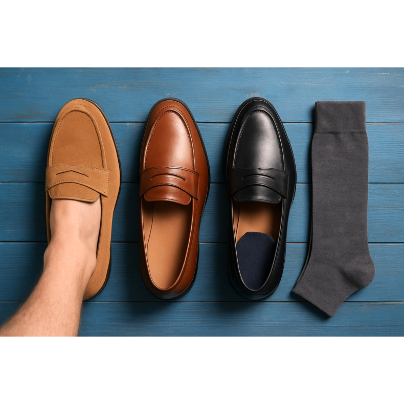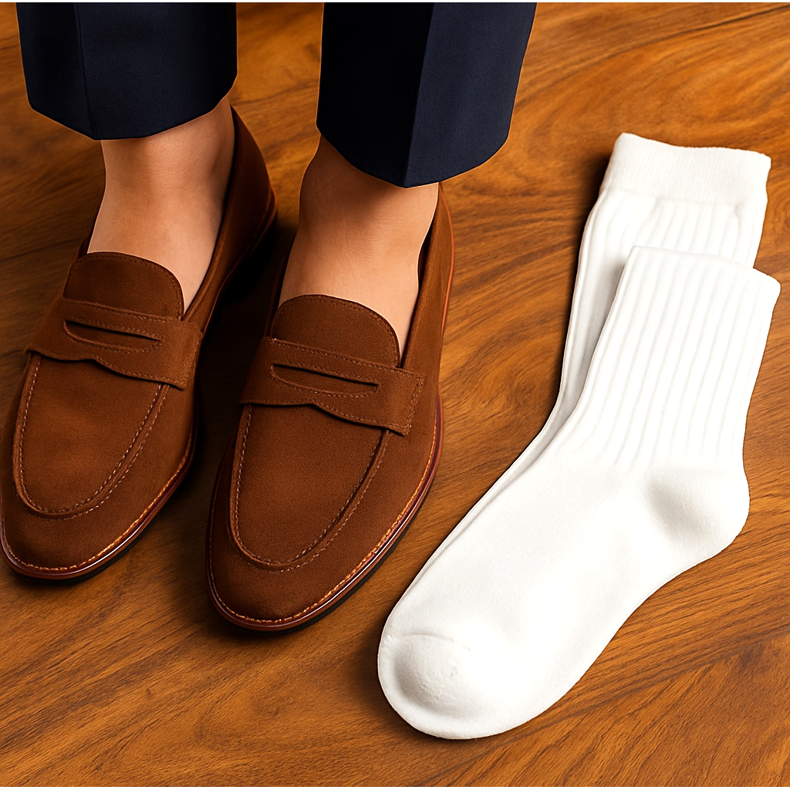 Hivatalos találkozók: Vékony zokni a nadrág vagy a cipő színében.
