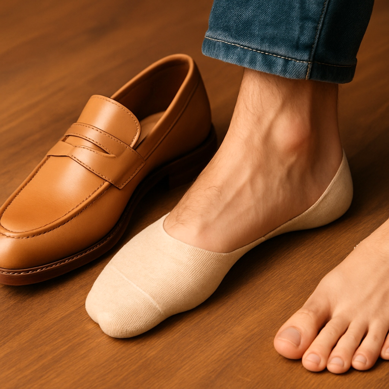 Vékony zokni, amely a boka alatt végződik, cipőben láthatatlan. A tökéletes megoldás - zokni kényelme + mezítlábas megjelenés.