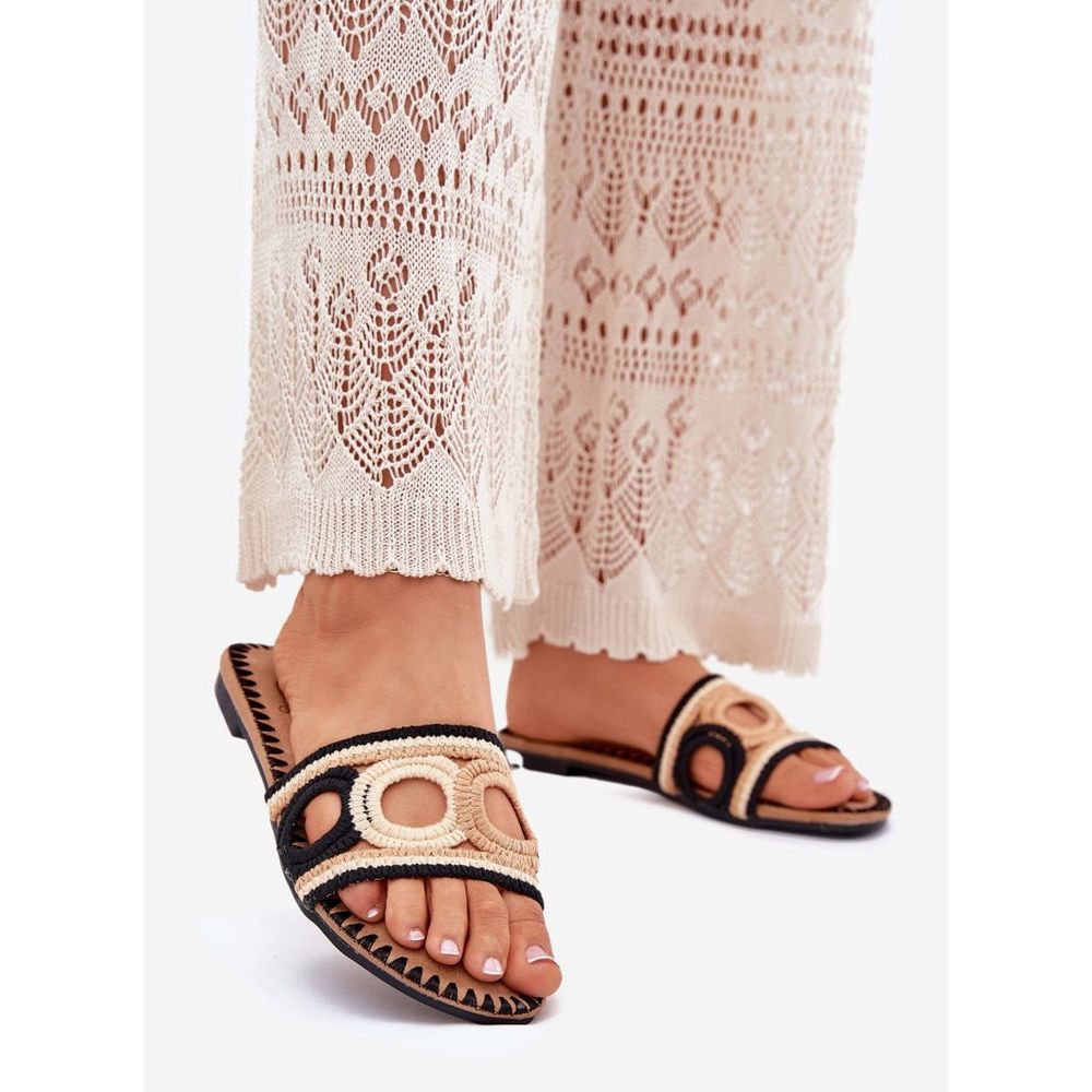 Ezek az univerzális flip -flopok tökéletesen keverednek könnyű ruhákkal, rövidnadrággal és nyári szoknyákkal, és kifinomult kiegészítést képeznek az ünnepi ruhák számára. A műanyagból készült barna talp hozzáadja az egész természetes karaktert, és a fekete szín miatt a papucsok könnyen összekapcsolódnak a különféle stílusokkal.