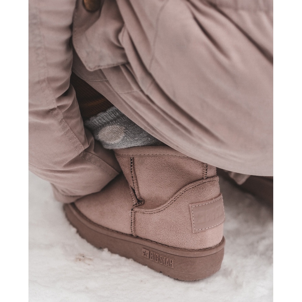 Vigyázzon a lányod meleg és kényelmes lábára a hideg napokon - Big Star MM374101 Hócsizma kombinálja a praktikusságot a divatos, rózsaszín dizájnnal. Az oldalsó csúszóval rögzített modell lehetővé teszi a gyors és kényelmes beillesztést, és a lágy, vastag szőrme, még alacsony hőmérsékleten is kellemes melegítést biztosít.