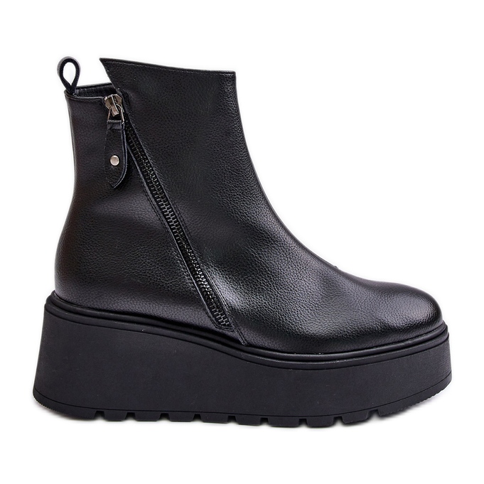 Részletek: Hőszigetelt női csizma éken és platformon, természetes bőr, fekete Vinceza 58340