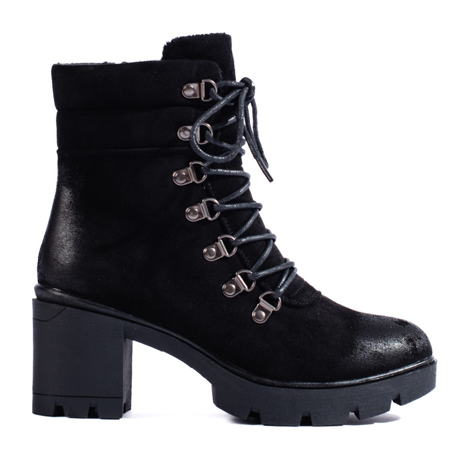 Elegáns és praktikus munkavállalók, amelyek egyesítik az alkalmi stílust a finom stílusú hangjegyekkel. Ökológiai velúrból készül, tökéletes a hűvösebb napokra a meleg felmelegedésnek köszönhetően - puha lábbeli takaró. Az univerzális fekete és a klasszikus vágás miatt napi és esti kirándulások során egyaránt működnek.