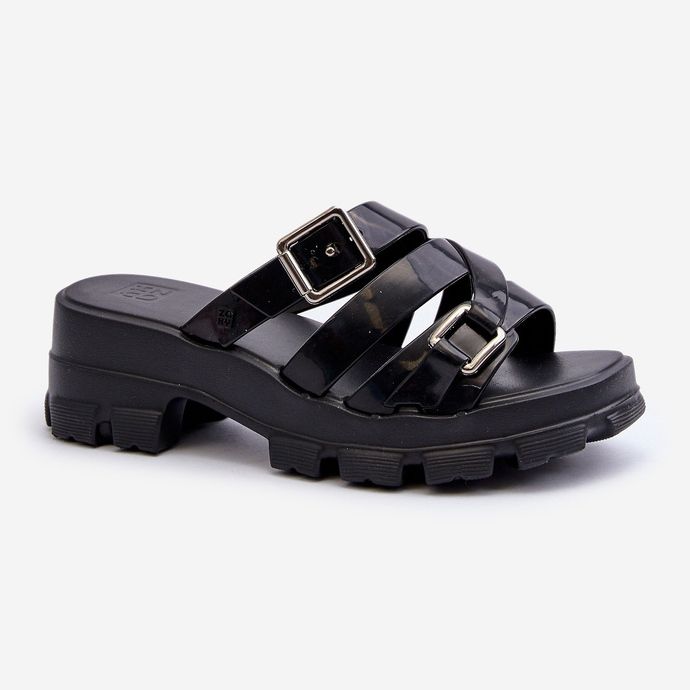 Az alacsony sarok a 6 cm -es magas blokk formájában biztosítja a stabilitást és a kényelmet is, hogy a nap folyamán is viselkedjen. A puha műanyag betétnek köszönhetően öröm lesz minden pillanatban, amelyet ezekben a papucsokban töltöttek. A kiváló minőségű műanyag garantálást és kényelmet, valamint a minimalista fekete kialakításuk tökéletes kiegészítővé teszi őket minden nyári stilizáláshoz.