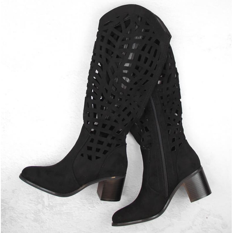 Jezzi Jezzi W JEZ427 áttört csizma, fekete