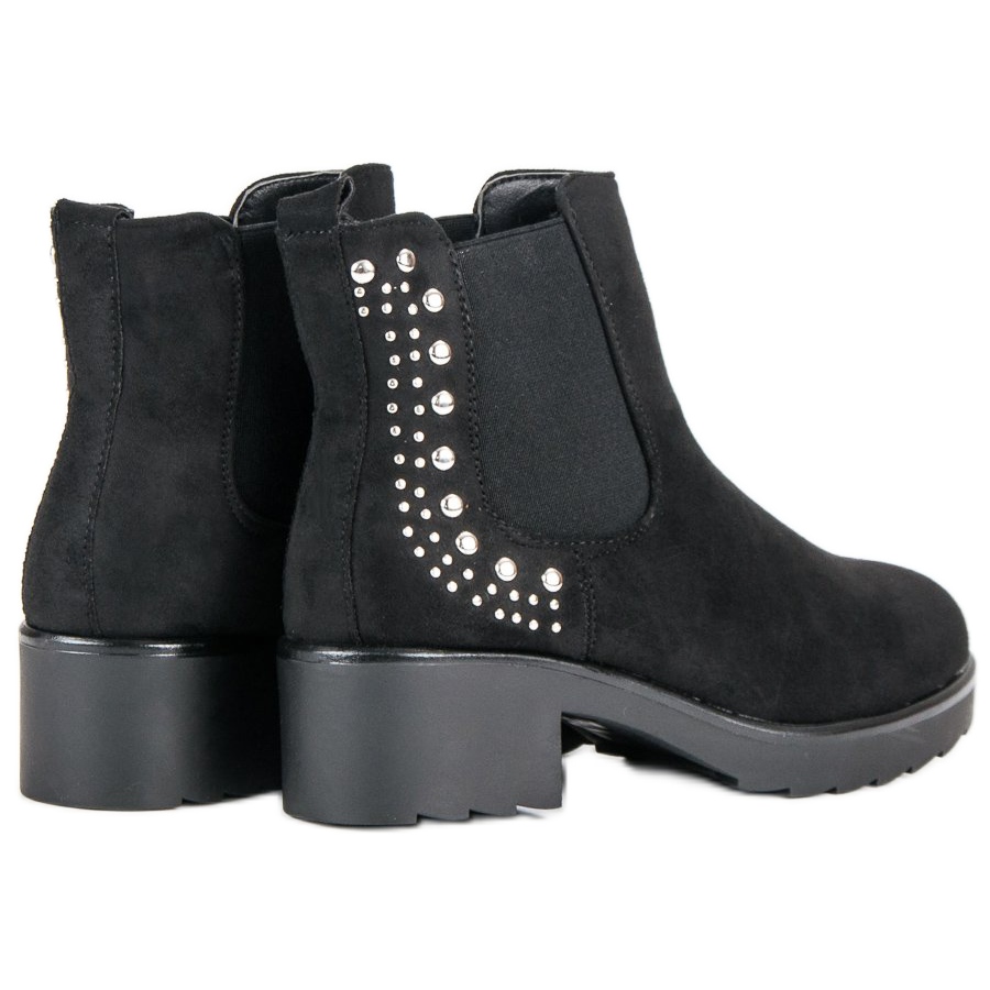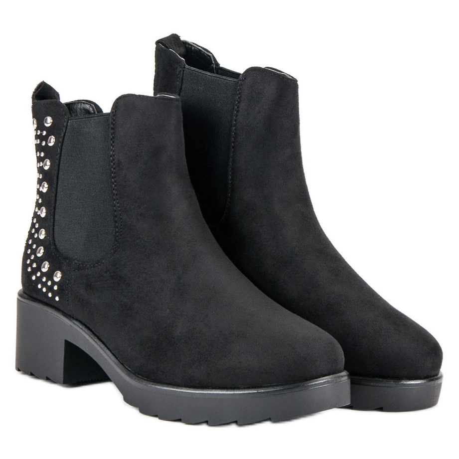 Az elegáns fekete színnek köszönhetően ez a csizma tökéletesen illeszkedik számos stílushoz – hétköznapi és formálisabb stílusokhoz egyaránt. A fényes strasszok és szegecsek nőies karaktert kölcsönöznek nekik, az 5 cm magas sarok pedig lehetővé teszi, hogy a kényelem feláldozása nélkül élvezhesd a finom sziluettet.