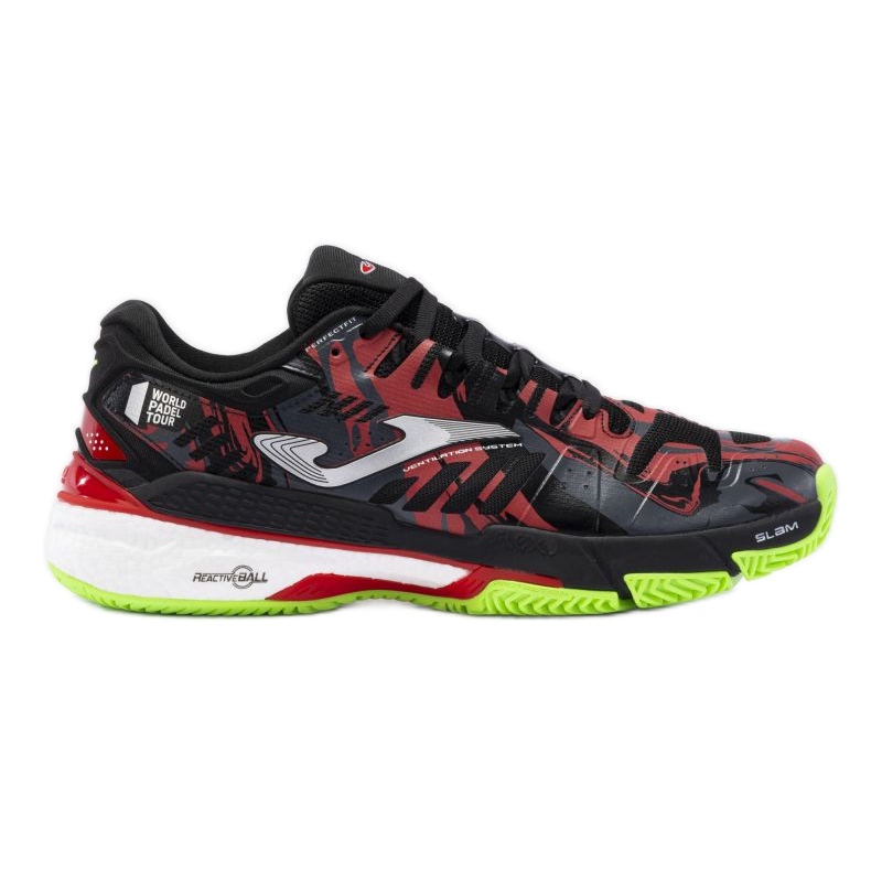 A Joma Slam Men 2301 M TSLAMW2301C cipő modern sportcipő az ütősportokat, különösen a padelt és a teniszezést aktívan űző férfiak számára. Alacsony profiljuk és fűzős záródásuk szilárd illeszkedést és tartást garantál intenzív játék közben.