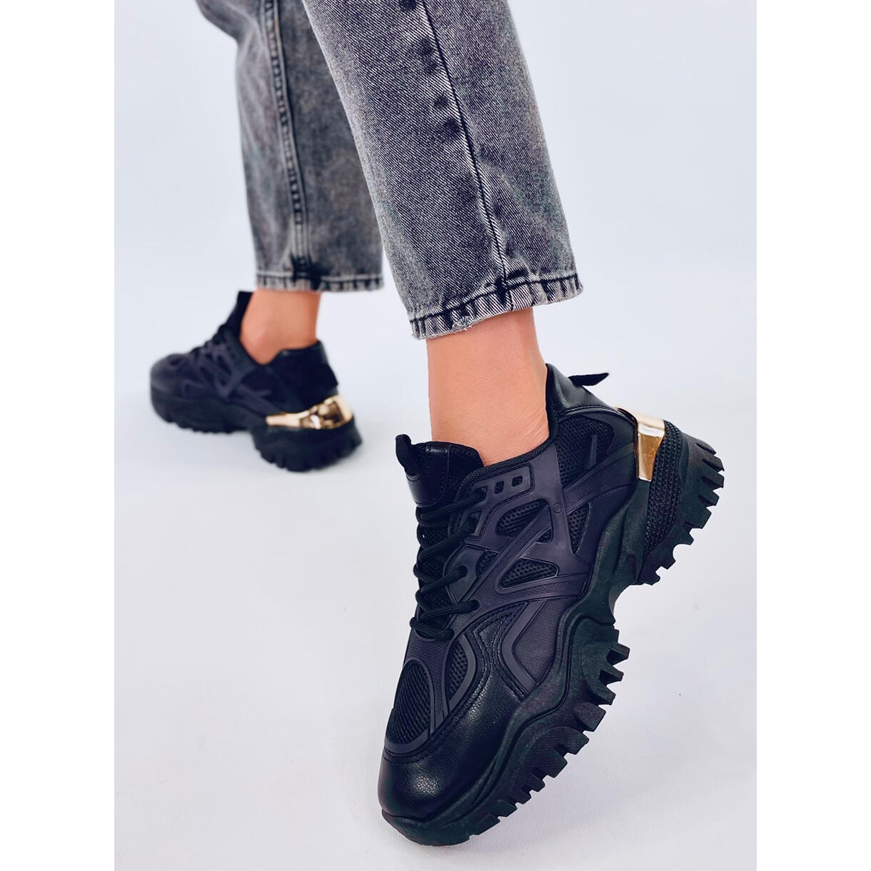 A Jonath Black női fekete sportcipő izgalmas kiegészítője minden olyan nő ruhatárának, aki értékeli a kényelem és az eredeti stílus kombinációját. Ezek a vastag talpú tornacipők tökéletes választás mindazok számára, akiket lenyűgöz a városi stílus és a kényelem a mindennapi tevékenység során. Az eredeti, fémes betéttel gazdagított fekete talp nemcsak felkelti a figyelmet, de mindenképpen lehetővé teszi, hogy kitűnjön a tömegből. Az olyan formatervezési minták, mint a Jonath Black, bizonyítják, hogy a kényelem nem zárja ki az innovatív dizájnt.