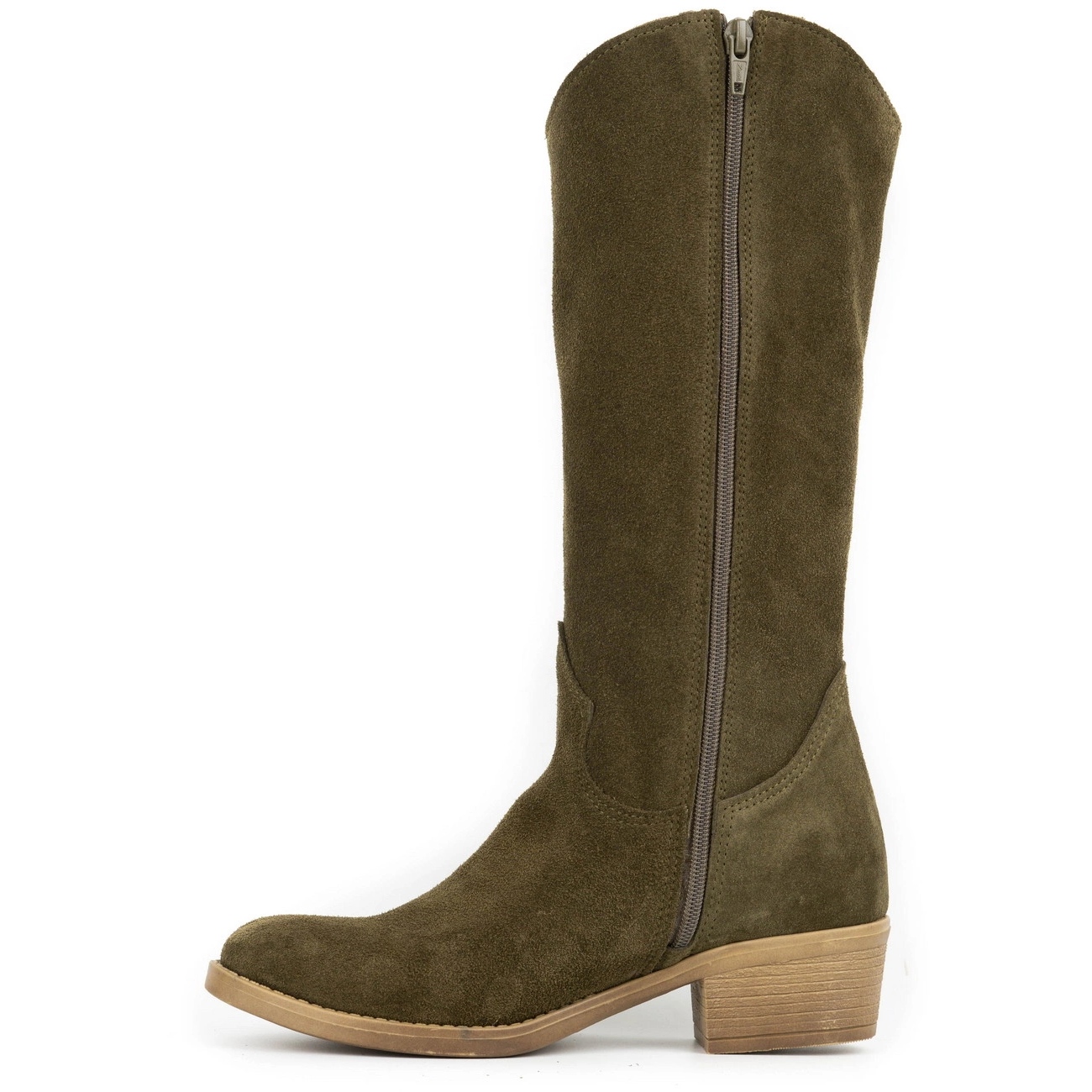 Olivier Julia - Női természetes velúr bőr zöld színű. A klasszikus térdvágás finom, mandula lábujjjal és egy stabil sarokral egy blokkon (5 cm) egyesíti a kényelmet az időtlen eleganciával - ideális mind a mindennapi stílushoz, mind a formálisabb kimenetekhez.