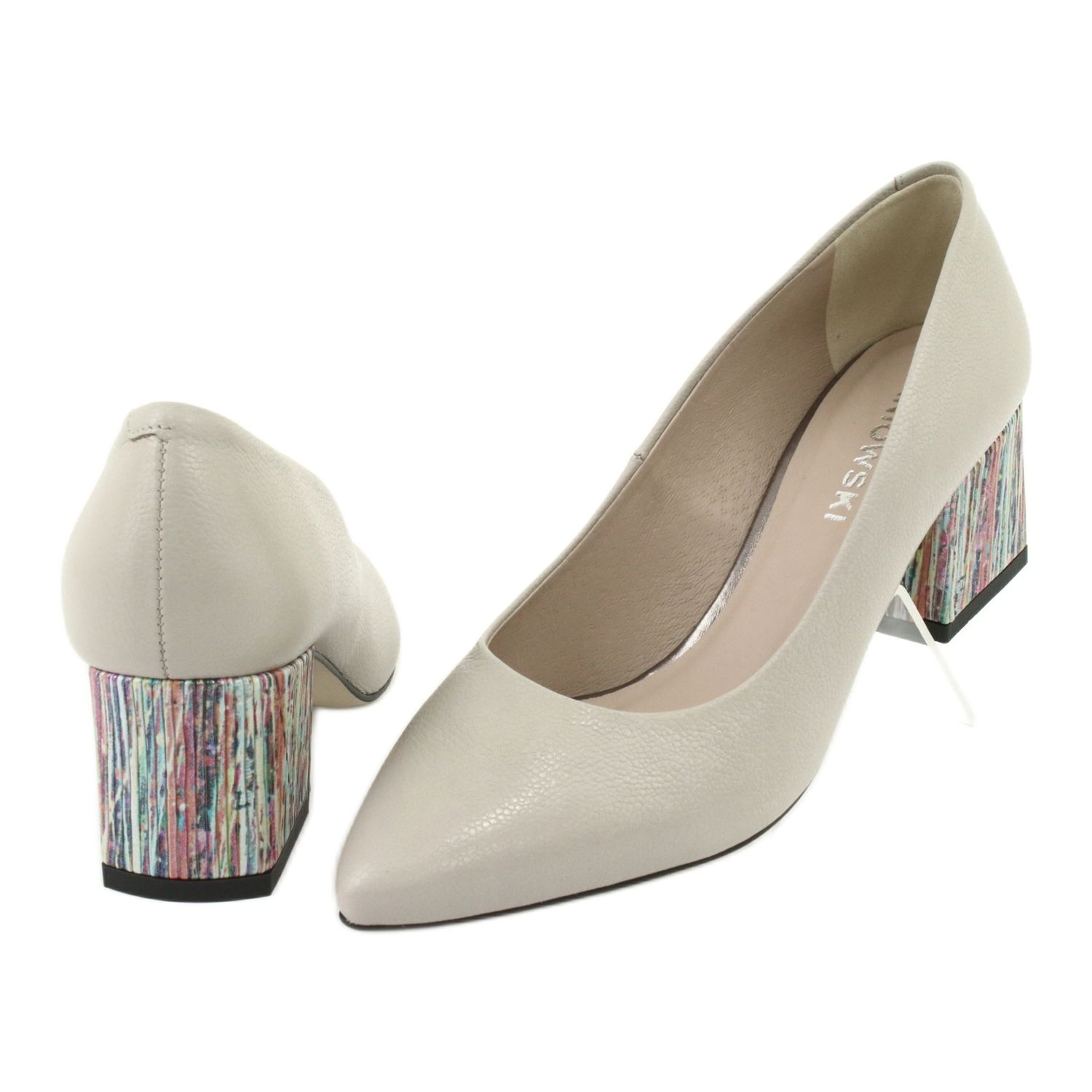 Elegáns női szivattyúk Kaniowski 0205 -es modell a "Mushroom" (bézs) árnyékban kombinálják a divatos kialakítást a viselési kényelemmel. Teljesen természetes gabonabőrből készül, bőrbetéttel és béléssel, garantálja a kényelmet még hosszabb használat során is. A klasszikus mandula lábujj és egy dekoratív blokk típus, amelynek magassága 5,2 cm -es stílusú, és a beillesztett szerkezet megkönnyíti a felhelyezést. A semleges, meleg árnyalatú a cipő tökéletesen illeszkedik mind az irodai, mind az esti stilizációkhoz.