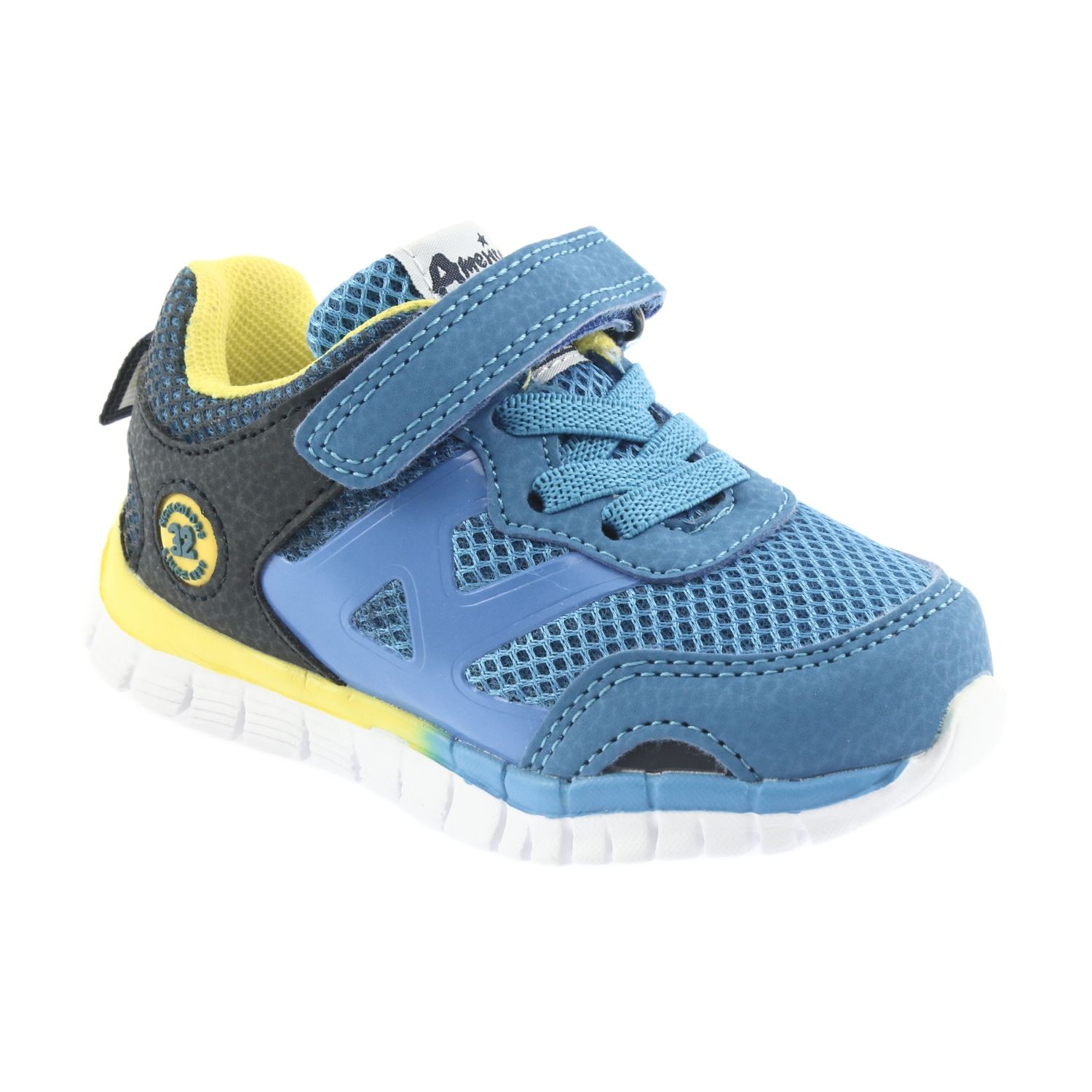 Íme a tökéletes sportcipő aktív fiúknak - American Club ES35 cipők sötétkék és kék színben, sárga kiegészítőkkel. A kicsiket szem előtt tartva készült cipők a modern dizájnt ötvözik a funkcionalitással, így nagyszerű választás a mindennapokra.