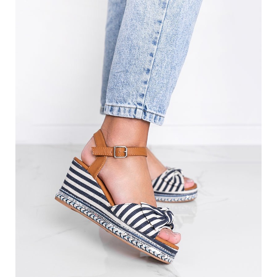 Fedezze fel a nyár varázsát a kék-fehér Dulce ékszandálokkal! Ez egy egyedi modell, amely ötvözi a klasszikus dizájnt divatos ékezetekkel. Felsőrészét érdekes csíkos minta és fényes flitterek díszítik, a finom masni pedig kifinomultságot ad az egésznek. Ezek a szandálok nem csak szemet gyönyörködtetnek, de tökéletesen kiegészítik minden nyári stílust.