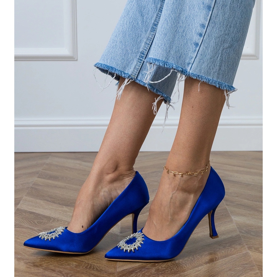 Részletek: Kék szatén szivattyúk cirkonokkal