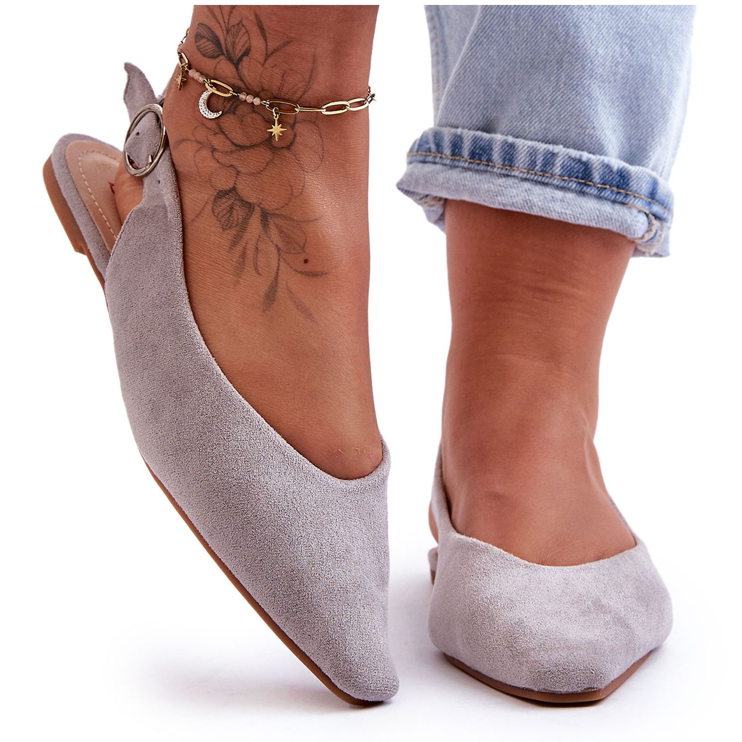 Fedezze fel az eleganciát és a kivételes kényelmet a szürke velúrból készült női PS1 balettlapokkal. Ezek a stílusos, nyitott sarkú cipők jellegzetes, hosszúkás orrral a tökéletes választás a tavaszi és nyári napokra. Kiváló minőségű eco velúrból készültek, nem csak nagyszerű megjelenést, hanem használati kényelmet is biztosítanak.