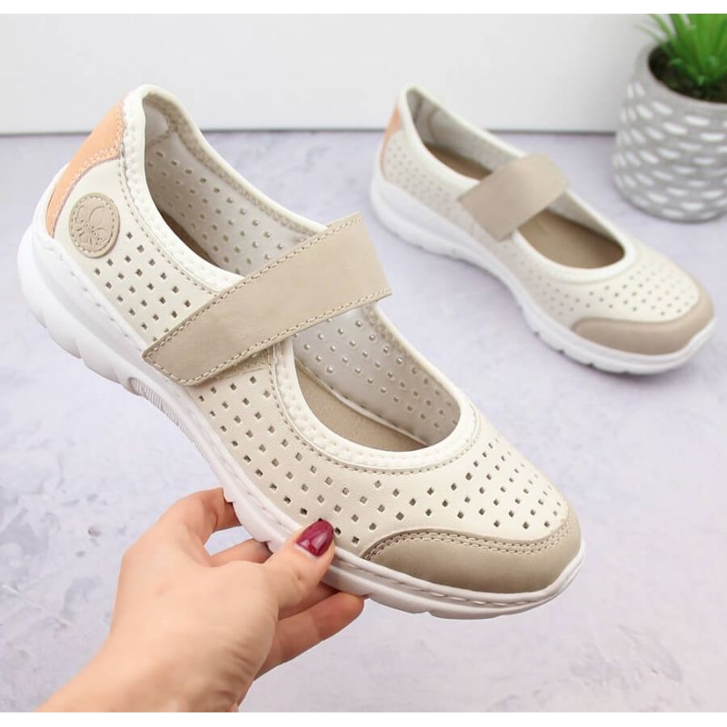 Részletek: Kényelmes áttört cipő Rieker W RKR575A, bézs