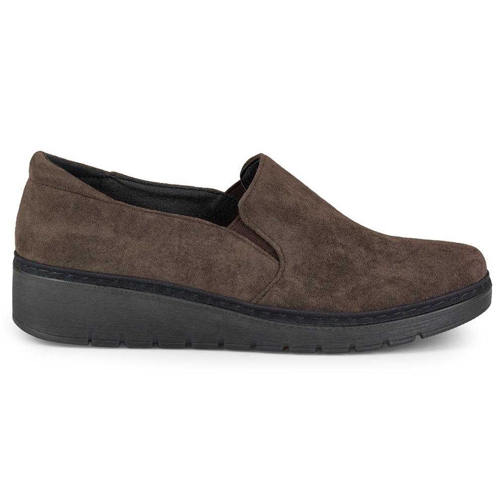Elegáns és kényelmes - velúr női barna cipő a Keeshoes kollekcióból. Ökológiai velúrból készültek, és ötvözik a klasszikus megjelenést a mindennapi viselet kényelmével. Egy semleges, meleg barna árnyalat sok stílusban fog működni - irodától hétvégi outputig.