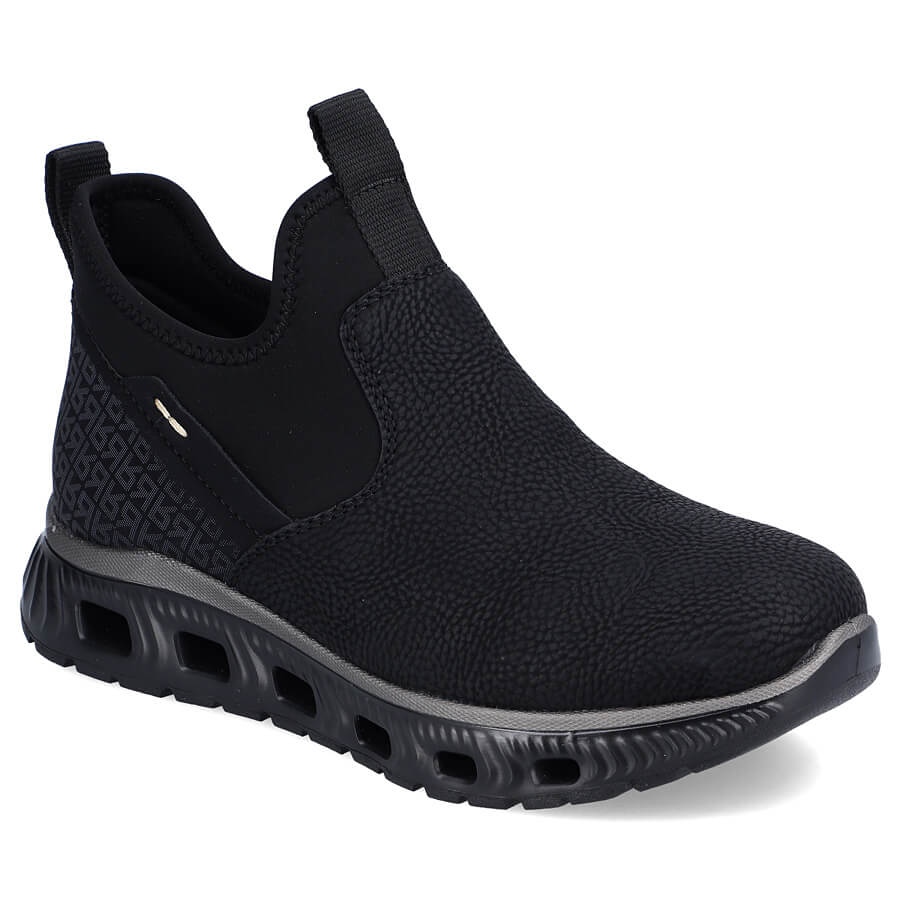 Részletek: Kényelmes, bokáig érő női cipő, fekete Rieker M6053-00