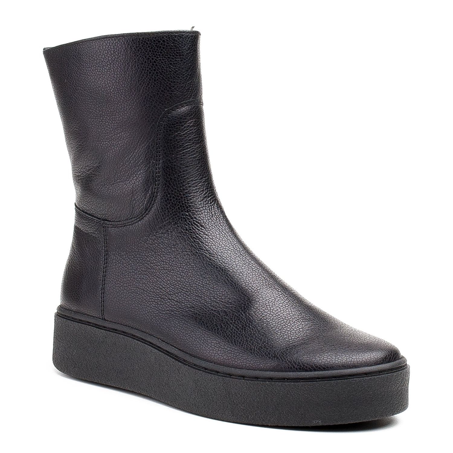 A cipő belseje filccel bélelt, mely kiváló szigetelést biztosít, és egész nap kellemes hőmérsékleten tartja a lábát. A csizma bokáig ér, teljes magassága 21 cm, a felsőrész rugalmas kerülete, ami tökéletes illeszkedést tesz lehetővé a lábszárhoz. Kerek orrával és finom, 4 cm magas platformjával ez a cipő tökéletes választás mindennapi viseletre és különleges alkalmakra egyaránt.