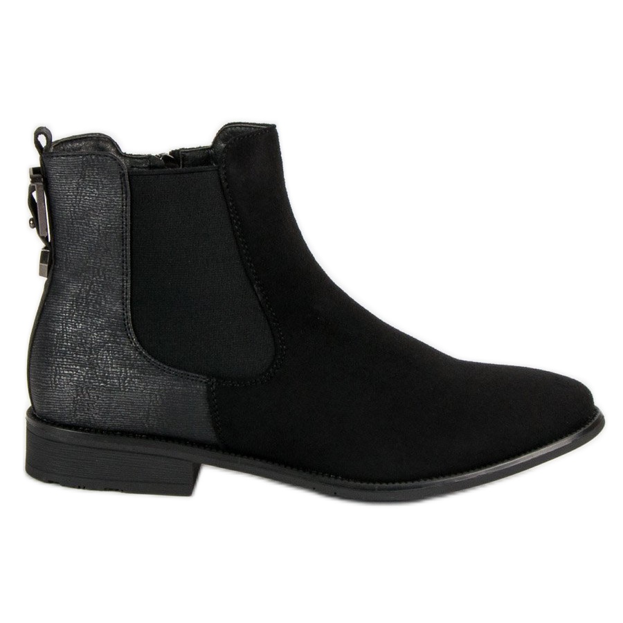 A csizmát gondosan úgy tervezték, hogy tökéletesen illeszkedjen a bokához, és egész napos kényelmet biztosítson. A kiváló minőségű cipzár és a rugalmas gumi használatának köszönhetően a fel- és levételük rendkívül egyszerűvé válik. A hátul található csat alakú dekoratív részlet karaktert ad a cipőnek, a nyers fekete szín pedig sok stílushoz passzol ezekhez az elemekhez.