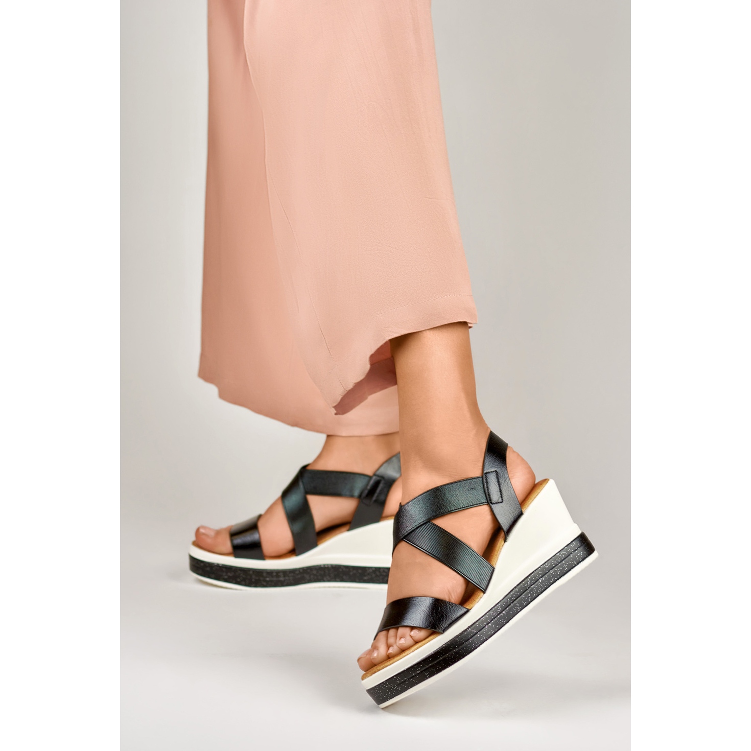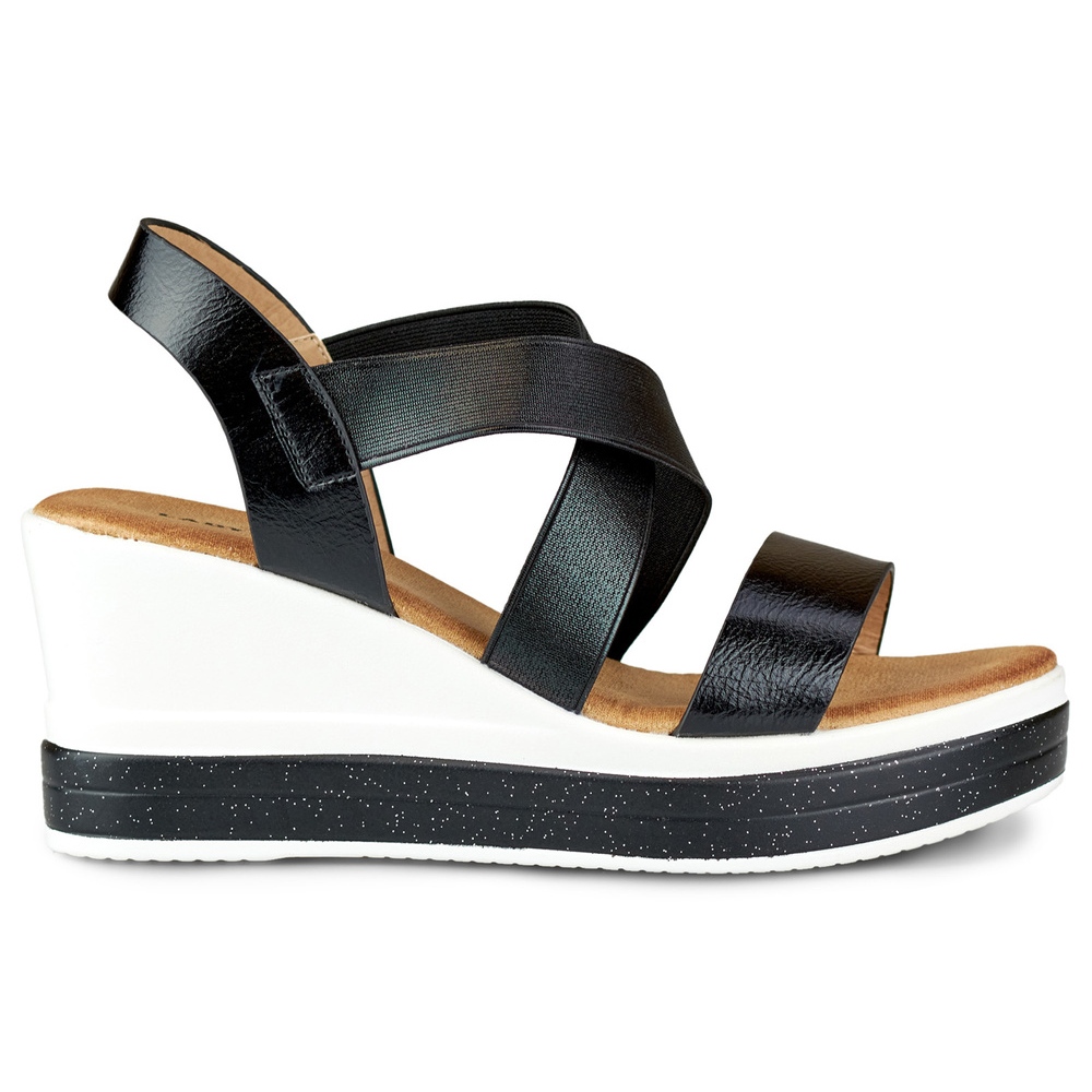 Részletek: Kényelmes ékszandál fekete pántokkal